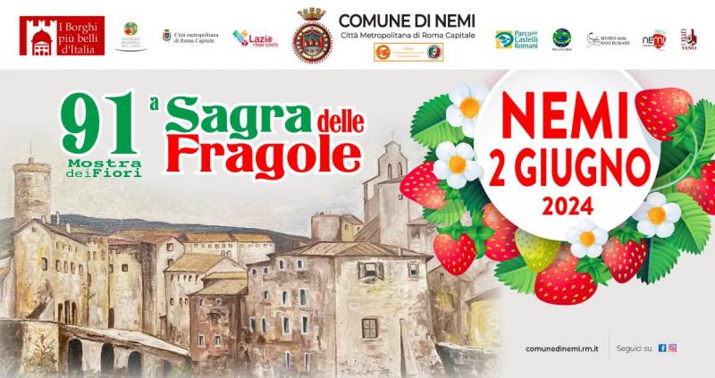 La Sagra delle Fragole di Nemi è molto più di una festa - dichiara il Sindaco di Nemi Alberto Bertucci - è un’occasione per scoprire le tradizioni di un borgo unico, immerso nel verde del Parco dei Castelli Romani e affacciato sul suggestivo Lago di Nemi. Non mancate a questa straordinaria giornata, che porta avanti una tradizione lunga 91 anni e che quest'anno celebra anche l'importante traguardo dell'ingresso di Nemi tra i borghi più belli d'Italia.