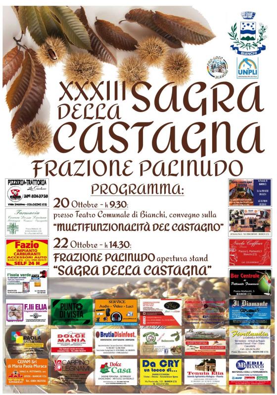 Domenica 22 ottobre 2017 a Palinudo, frazione del Comune di Bianchi (CS), si tiene la 33^ edizione della Sagra della Castagna.