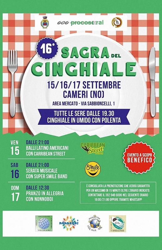 La Pro Loco di Cameri comunica che la Sagra del Cinghiale a Cameri organizzata da Procos Cral si svolgerà nei giorni 15, 16, 17 Settembre 2023.