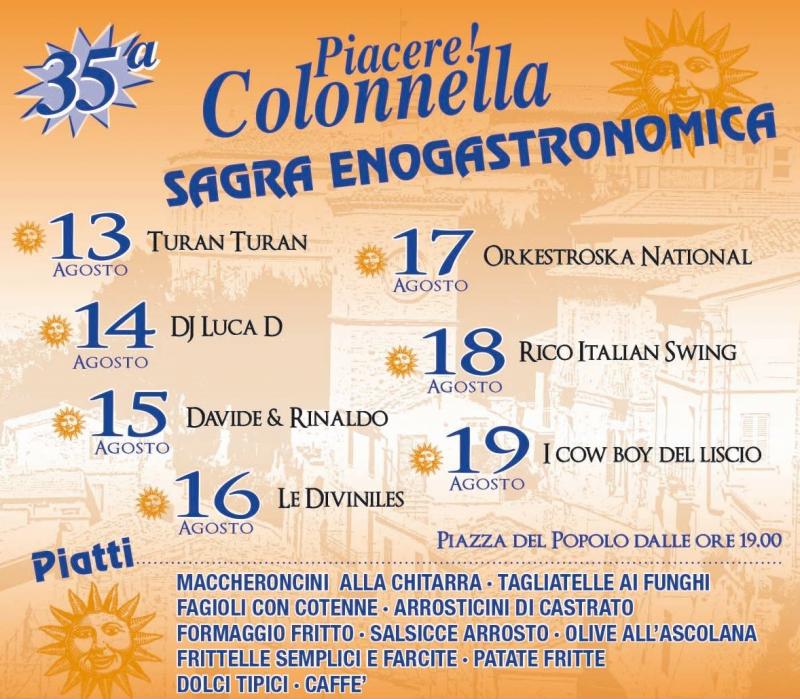 Dal 13 al 19 agosto 2018 torna per la sua 35^ edizione Piacere Colonnella, la sagra enogastronomica che si svolge ogni anno d'estate.