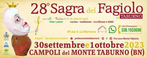Nei prossimi giorni sarà ufficializzato il programma della ‘28° Sagra del Fagiolo del Taburno’ targata Pro Loco ‘Monte Taburno’ in programma il 30 settembre e il 1 ottobre.