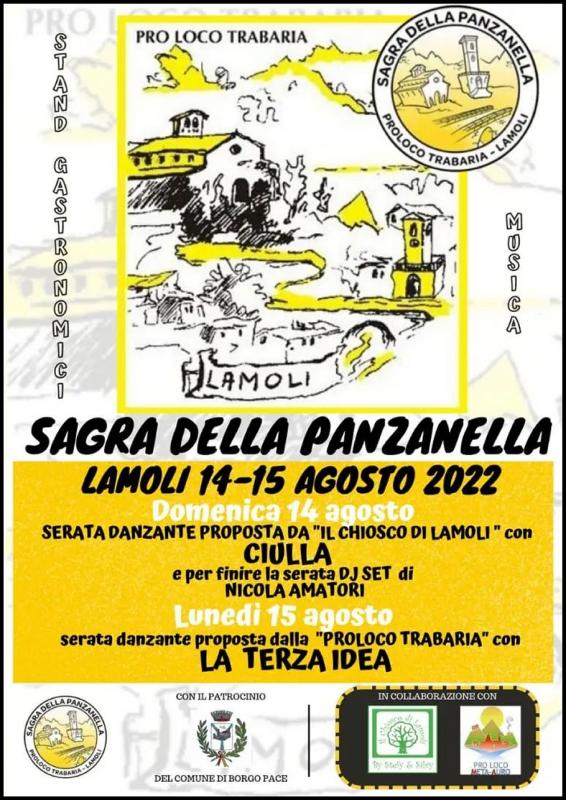 Fin dal 1968 a Lamoli, piccola frazione del Comune di Borgo Pace (600 Mt. sul livello del mare), la Pro-Loco Trabaria organizza, nelle giornate a cavallo del ferragosto, la SAGRA DELLA PANZANELLA: piatto povero ma gustoso, perfetto per l'estate.