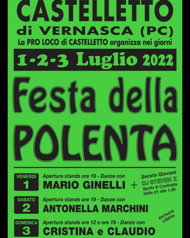 Festa della Polenta a Castelletto di Vernasca dal 1 al 3 Luglio 2022