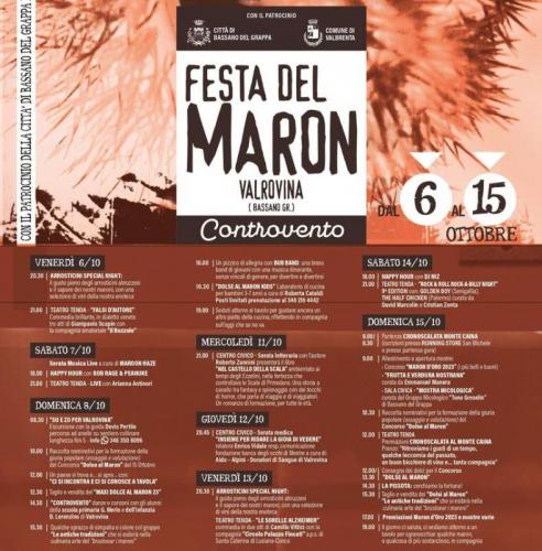 la Festa del Maron a Valrovina, frazione del Comune di Bassano del Grappa in provincia di Vicenza si svolge nei giorni dal 6 al 8 e dal 11 al 15 Ottobre 2023