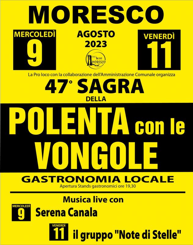 Moresco Festa del Patrono San Lorenzo Martire 10 agosto e sagra della Polenta con le vongole