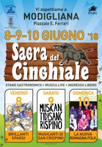 L'8, 9, 10 giugno 2018 torna per la 3° edizione la Sagra del Cinghiale a Modigliana, presso Piazzale Enzo Ferrari, organzzata dalla Pro Loco Modigliana in collaboraziuone con la squadra del cinghiale della VAL Tramazzo.