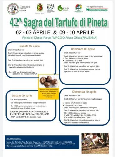 La Sagra del Tartufo di Pineta di Classe (via Fosso Ghiaia 1) si svolgerà il 2 e 3 Aprile e il 9 e 10 Aprile 2022,