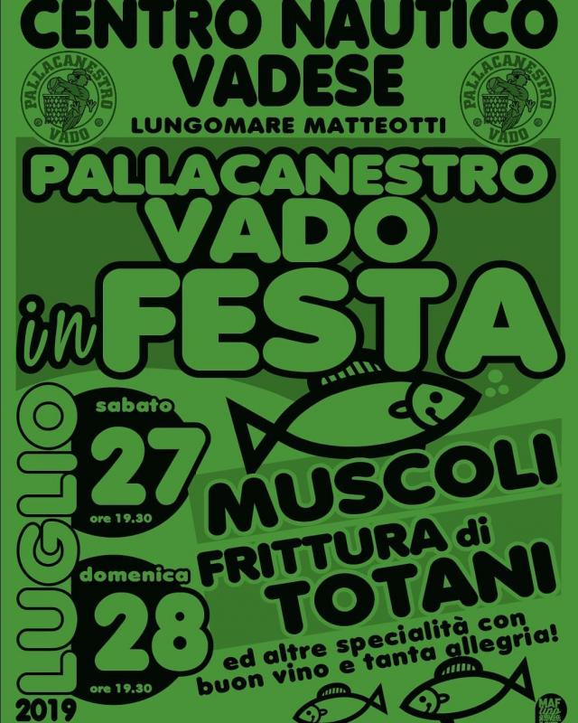 Sagra del Pesce al Centro Nautico Vadese sul lungomare di Vado Ligure il sabato 27 e domenica 28 luglio 2019 organizzata dalla società Pallacanestro Vado.