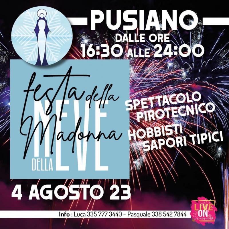 Un’antica celebrazione religiosa dalle antiche origini, in attesa della ricorrenza della Madonna della Neve, in una cornice di festa nel borgo e di devozione nel piccolo santuario che sovrasta l'abitato di Pusiano (LC): un grande spettacolo pirotecnico sul lago, la manifestazione più caratteristica di Pusiano, che attira migliaia di persone.