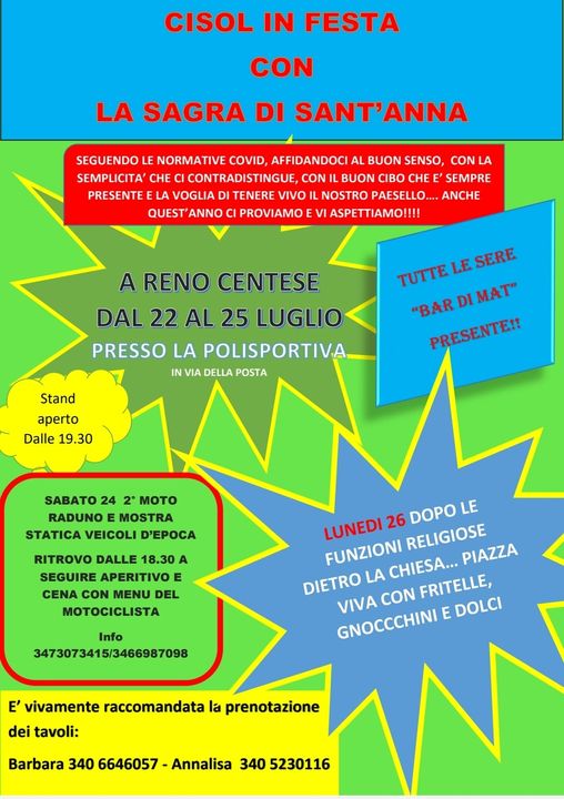 Diniego di responsabilià: le notizie riportate in questa pagina sono state fornite da Enti Pubblici e Privati e, organizzazione eventi e sagre, fiere. Suggeriamo di verificare date, orari e programmi che potrebbero variare, contattando le organizzazioni o visitando il sito ufficiale dell'evento.