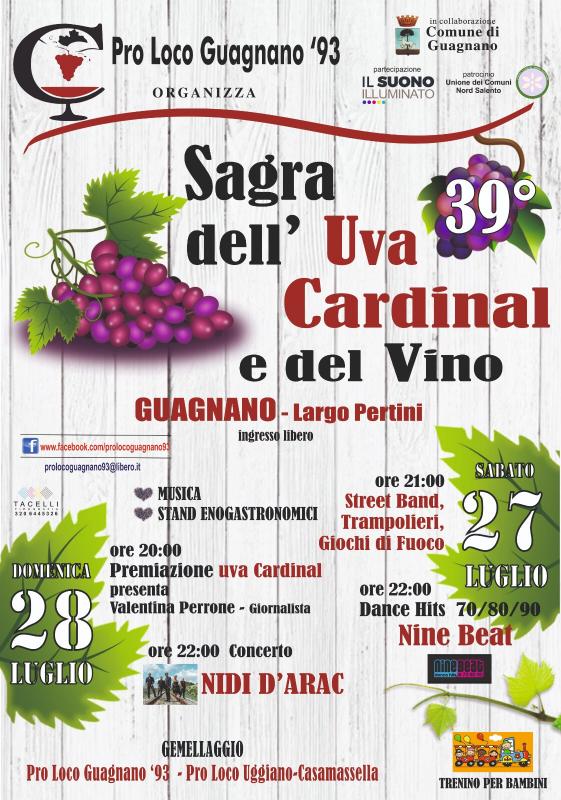 Torna la Sagra dell’Uva Cardinal e del Vino, evento attesissimo dell’estate salentina di scena sabato 27 e domenica 28 luglio nella tradizionale location di Largo Pertini.