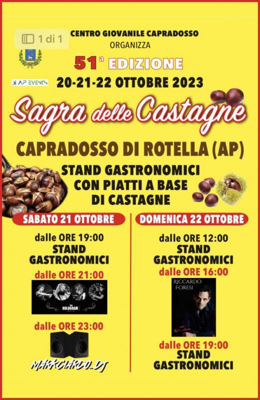 Il CENTRO GIOVANILE CAPRADOSSO torna con la 51a sagra delle castagne, per continuare a divertirci insieme!
