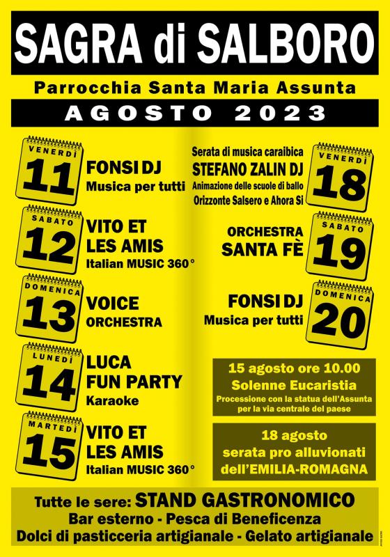 Sagra di Salboro la Sagra dell'Assunta dal 11 al 15 e dal 18 al 20 Agosto 2023