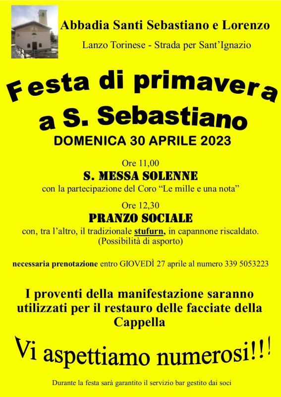 FESTA DI PRIMAVERA A SAN SEBASTIANO Domenica 30 aprile 2023Via San Sebastiano10074 – LANZO TORINESE