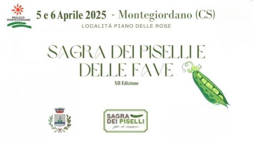 Sabato 5 (ore 18.00) e domenica 6 0re (11.00) Aprile 2025 via del Carmine; Montegiordano (CS) XII edizione della Sagra dei piselli e delle fave organizzato dalla “pro-loco”con il patrocinio del comune di Montegiordano anche quest’anno, la sagra avrà come punto di partenza la gastronomia.