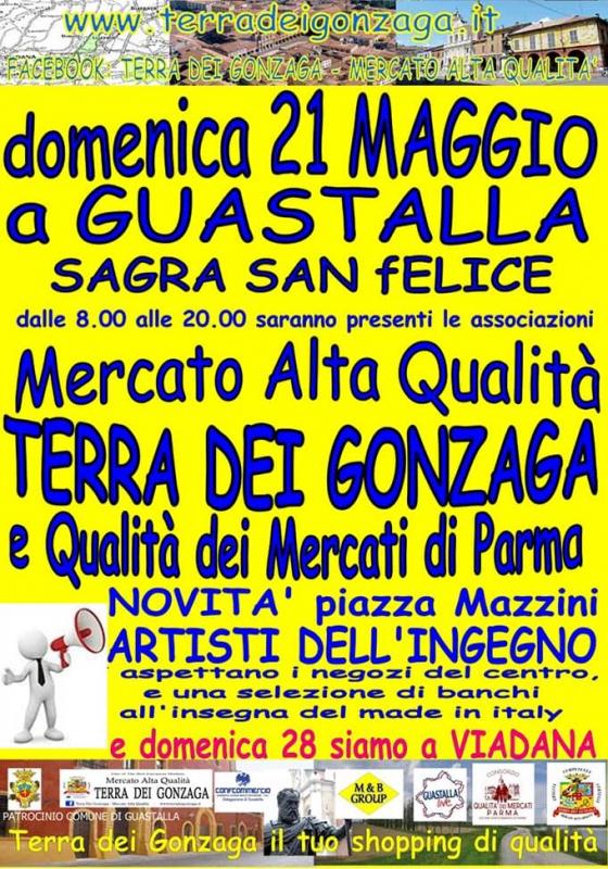 Dalle ore 8:00 alle 20:00 saranno presenti Mercato Alta Qualità Terra dei Gonzaga e Qualità dei Mercati di Parma.