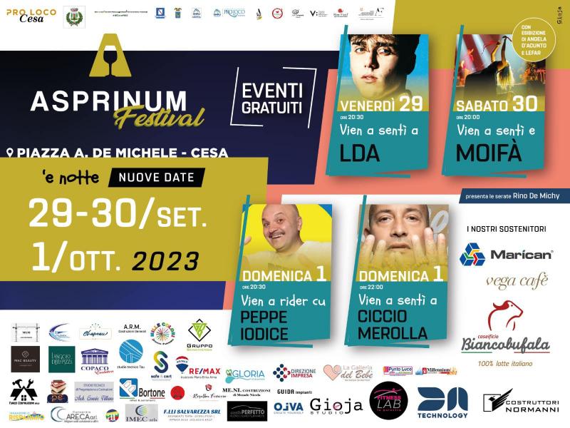 Quest'anno l'Asprinum Festival, la Sagra Del Vino Asprinio di Cesa, si svolge il 15, 16 17 e 29, 30 settembre e 1 Ottobre 2023 .