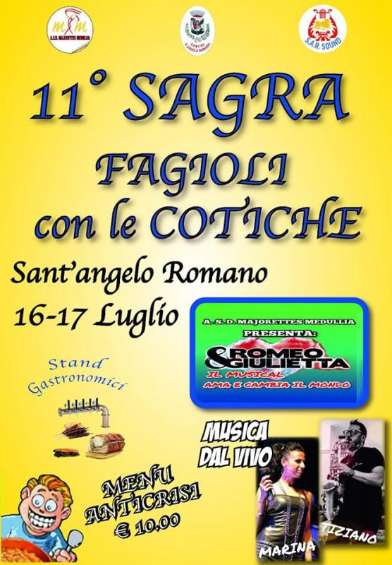 Sagra Dei Fagioli Con Le Cotiche a Sant'Angelo Romano 16 - 17 Luglio nella suggestiva Piazza Umberto I, tra la torre dell'orologio e il castello Orsini-Cesi, all'insegna del puro divertimento.