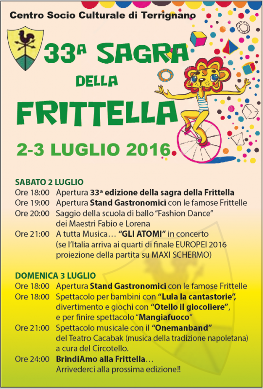 La 33^ SAGRA DELLA FRITTELLA si svolge sabato 02 e domenica 03 Luglio a Terrignano di Paliano (FR).