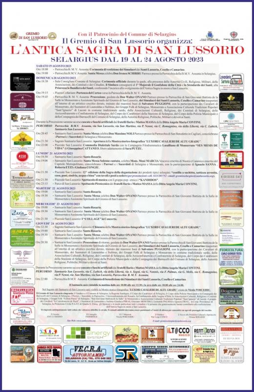 Il Gremio di San Lussorio anche quest’anno ha iniziato i preparativi per l’organizzazione dei Festeggiamenti dell’Antica Sagra in onore a San Lussorio, Santo Patrono della municipalità Selargius, che si svolgeranno dal 19 al 24 Agosto 2023.