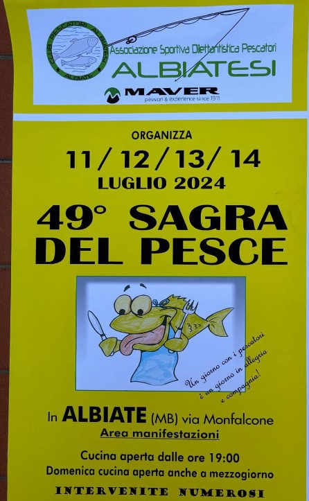 La Sagra Del Pesce di Albiate si svolge in un unico fine settimana, dal 11 al 14 luglio 2024, presso l'area attrezzata in via Monfalcone.