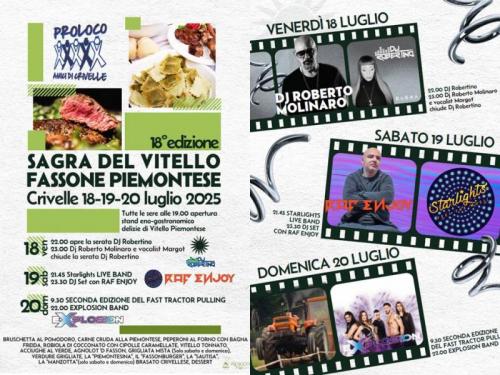 La 18° edizione della Sagra del Vitello Fassone Piemontese è in programma nel weekend da 18 al 20 luglio a Crivelle di Buttigliera d’Asti.