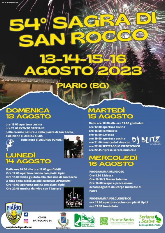 Sagra Di San Rocco il 13, 14, 15, 16 agosto 2023 a San Rocco di Piario.