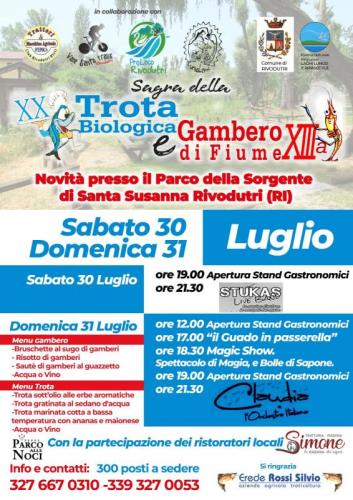 Proprio in questa fresca location all’ombra dei pioppi, d’altronde, sorge uno dei più importanti allevamenti ittiogenici di trote d’Italia: si tratta di una delle più rilevanti attività produttive locali e perciò gli abitanti di Rivodutri, che da sempre ne traggono sostentamento economico, hanno deciso di dar vita a questa manifestazione, giunta ormai alla quattordicesima edizione.