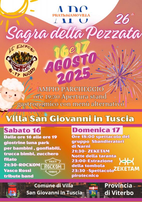 La APS pratichiamo villa di Villa San Giovanni in Tuscia (VT) è lieta di presentare la XXVI SAGRA DELLA PEZZATA