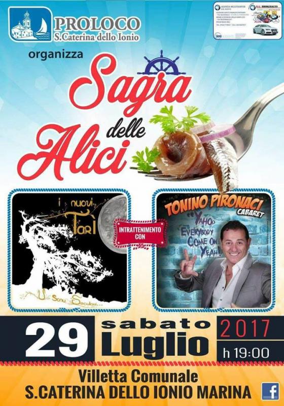 La "Sagra delle Alici" è organizzata dalla ProLoco di Santa Caterina dello Ionio ed è in programma sabato 29 luglio 2017 presso la Villetta Comunale della frazione marina a partire dalle ore 19:00.