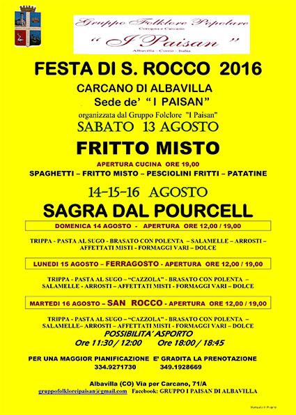 SI INCOMINCIA SABATO 13 AGOSTO CON LA SERATA DEDICATA AL FRITTO MISTO PER PROSEGUIRE DOMENICA LUNEDI E MARTEDI CON LA TRADIZIONALE CUCINA BRIANZOLA.