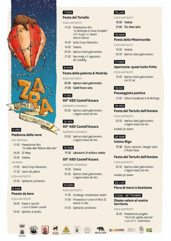 Sagra del Tortello si svolge nei giorni 7 Agosto 2022 a Castell'Azzara e fa parte della manifestazione Zarasummerfest.