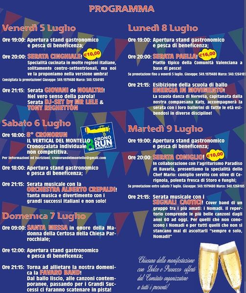 Diniego di responsabilià: le notizie riportate in questa pagina sono state fornite da Enti Pubblici e Privati e, organizzazione eventi e sagre, fiere. Suggeriamo di verificare date, orari e programmi che potrebbero variare, contattando le organizzazioni o visitando il sito ufficiale dell'evento.