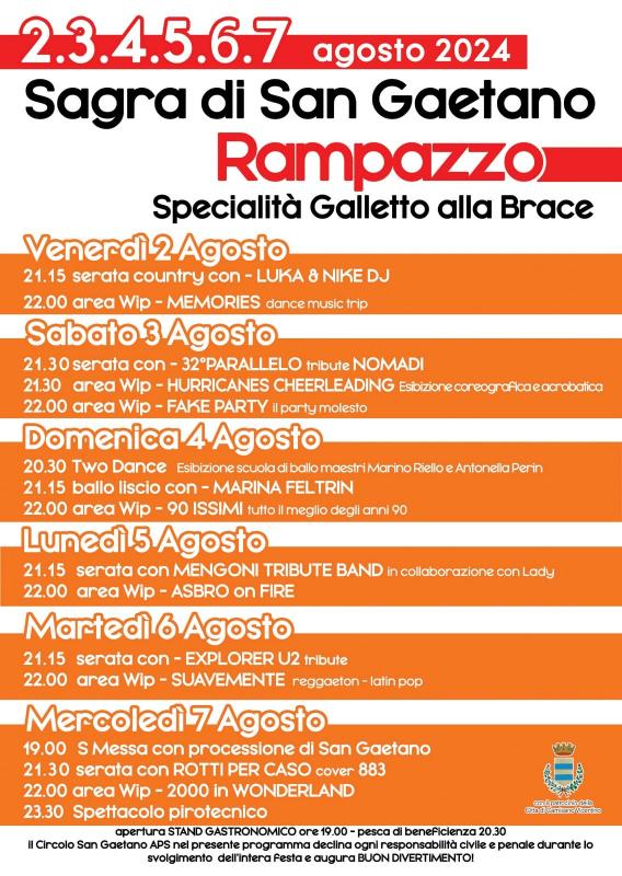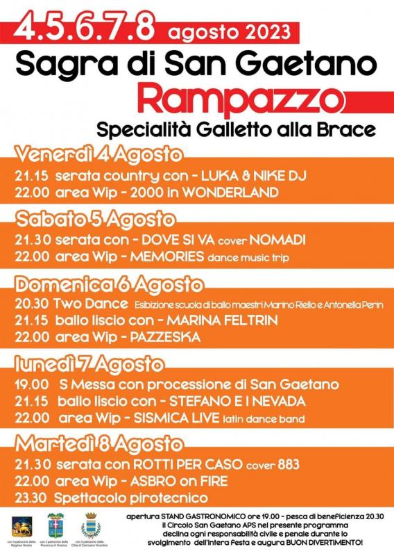 Sagra di San Gaetano a Rampazzo di Camisano Vicentino dal 2 al 7 Agosto 2024
