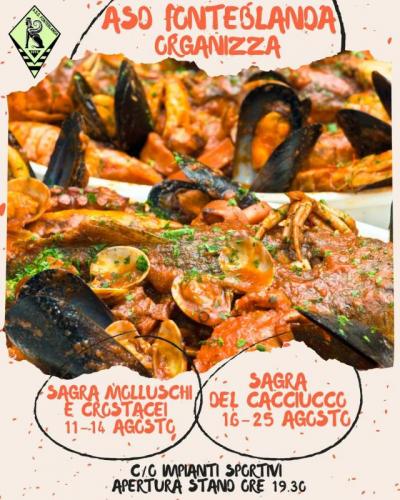 Associazione Sportiva Fonteblanda organizza la Sagra Molluschi e Crostacei dal 11 al 14 agosto 2022, presso il campo sportivo di Fonteblanda (GR), via dello Stadio 8,