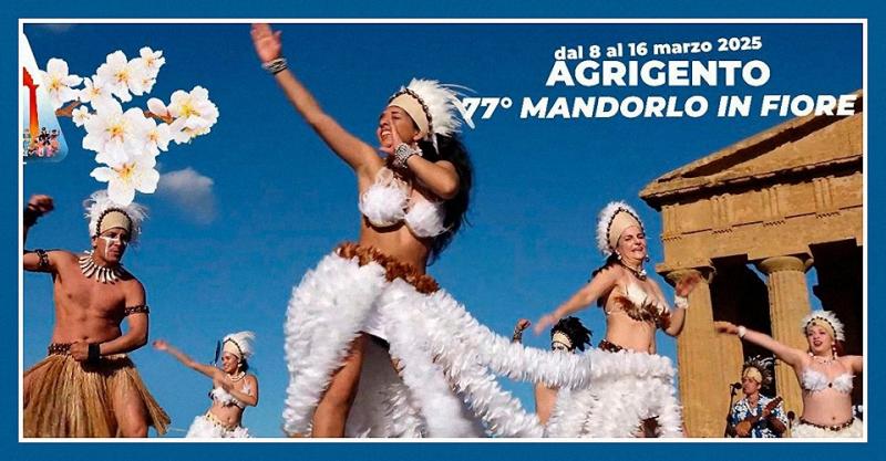 Per l’edizione 2025 il Mandorlo in Fiore - Sagra della Primavera si svolgerà ad Agrigento dal 08 al 16 Marzo e come di consueto vedrà i gruppi folk presenti, sia adulti che bambini, esibirsi nelle piazze cittadine e nei principali teatri.