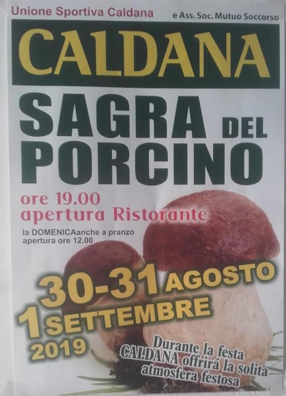 Il 30, 31 Agosto e 01 Settembre 2019 l'Unione Sportiva Caldana invita tutti buongustai alla Sagra del Fungo Porcino di Caldana, frazione del Comune di Gavorrano (GR).