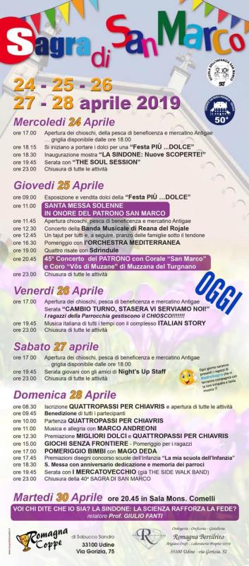 Torna la Sagra Di San Marco a Chiavris nei giorni dal 24 al 28 aprile 2019.