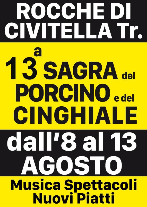 Torna a Rocche di Civitella per la decima edizione la Sagra del Porcino e del Cinghiale: eccellenze locali protagoniste della kermesse gastronomica promossa dall’Associazione culturale “Le Quattro Rocche” con il patrocinio del Comune di Civitella del Tronto.