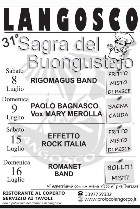 Sagra del buongustaio il 8 -9 e 15 - 16 luglio 2023 a Langosco (PV).