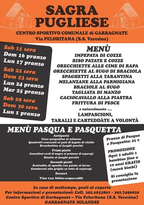 Da Sabato 15 Aprile a Lunedì 1 Maggio 2017 si svolge la Sagra Pugliese a Garbagnate Milanese.