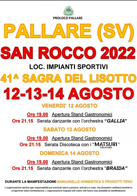 Dal 12 al 14 agosto 2022 si svolgono i Festeggiamenti San Rocco, 3 serate all'insegna della buona cucina, della buona musica e soprattutto con il nostro "re": il lisotto!