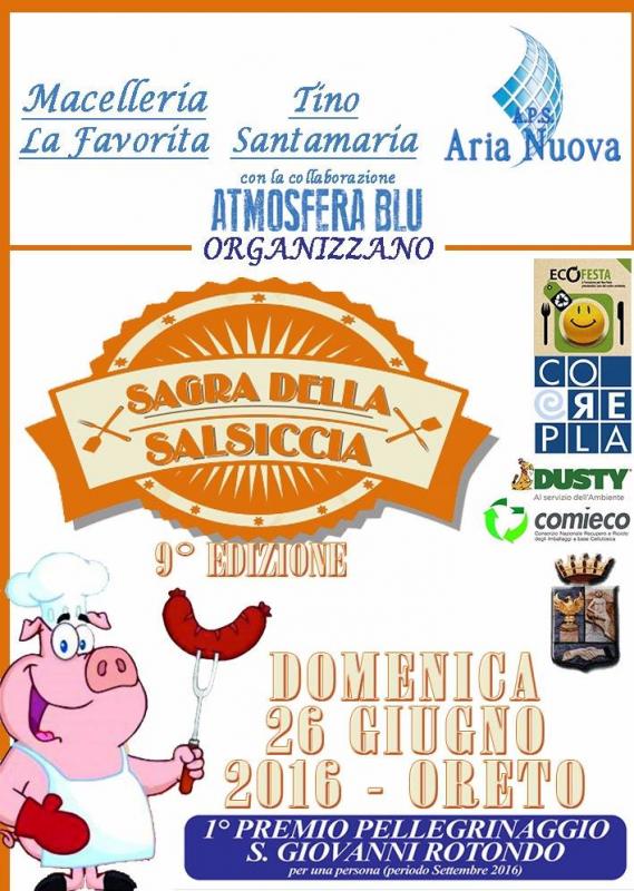 Insieme alla Dusty, alla Corepla e alla Comieco, l'APS Aria Nuova darà un tocco ecologico all'evento della Sagra della Salsiccia, da sempre molto atteso e partecipato.