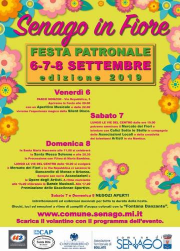 Nel fine settimana del 6, 7, 8 settembre 2019, in occasione della festa del patrono, si svolge Senago in Fiore, esposizione florovivaistica.