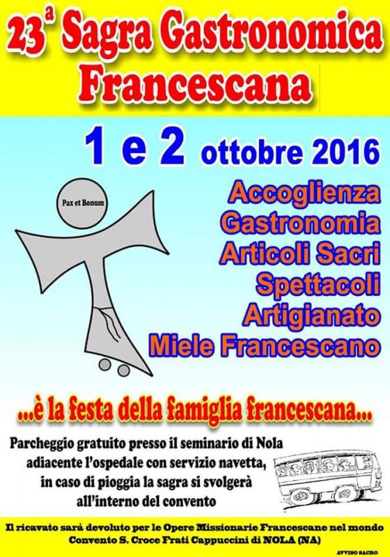 Per il XXIII anno consecutivo si terrà nel piazzale antistante il Convento Santa Croce dei frati Cappuccini di Nola la tradizionale sagra in onore di San Francesco.