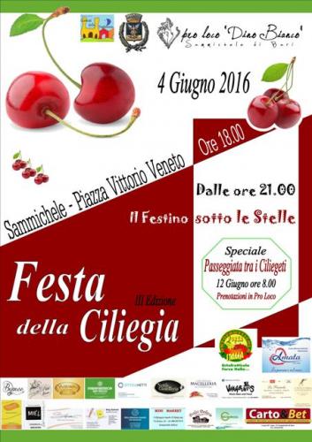 Qinta edizione di Sammichele in Sagra, la festa ideata dalla Pro Loco "Dino Bianco" di Sammichele di Bari che promuove i prodotti del nostro territorio, della nostra gastronomia e della nostra agricoltura. In questo speciale, la ciliegia ne è la protagonista assoluta in quanto prodotto maggiormente coltivato dai nostri agricoltori.