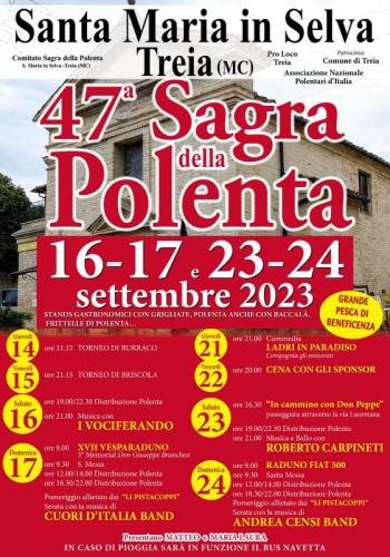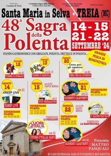 La 48^ Edizione della Sagra della Polenta a Santa Maria in Selva Localita del Comune di Treia (MC) si svolge nei giorni 14-15 e 21-22 settembre 2024.
