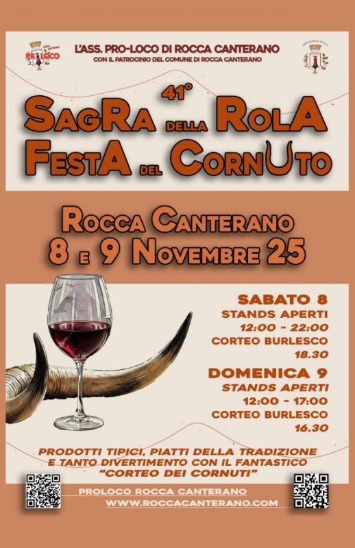 La Sagra Della Rola, insieme alla Festa del Cornuto, si svolge quest'anno nel fine settimana del 08 e 09 Novembre 2025