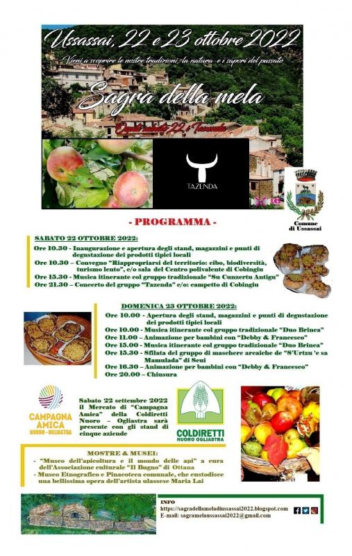 Sabato 22 e domenica 23 ottobre 2022 nella suggestiva cornice del centro storico di Ussassai si rinnova l'appuntamento con la “Sagra della Mela”, giunto alla sua ventiquattresima edizione.