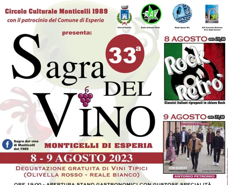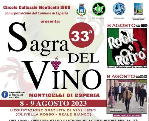 Sagra del Vino Monticelli 8 e 9 e agosto 2023, Centro storico di Monticelli, frazione del Comune di Esperia